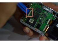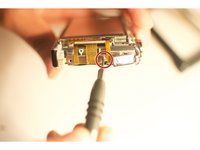 Turning camera back to the LCD screen, remove the three screws just to the right of screen. These are located next to the ribbon cables attaching the LCD to the motherboard.