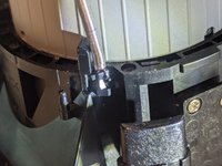 Here we can see the return spring that pulls the brightness adjustment dial back to its resting position. This will have to be disconnected to remove the front cover.
