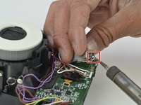 Remove the flash bulb from the circuit board by shifting it towards the side with the motor and lifting.