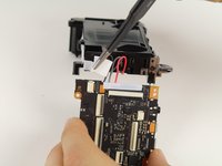 Using a pair of pliers, pull the rod out of the top plate of the camera. Now you'll finally have access to all the screws that need to be removed.