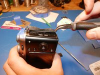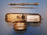 Unscrew the six 4.0 mm JIS#00 screws on the bottom of the camera. You should now be able to remove the bottom plate from the camera.