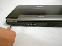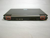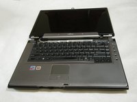 Lay the computer flat on a stable surface with the monitor pointing away from you.