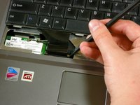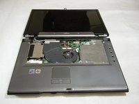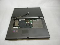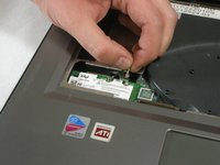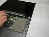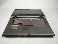 Disconnect the ribbon cable from the motherboard and remove the hinge cover from the computer.