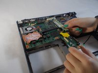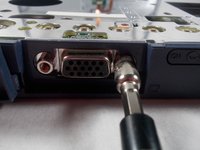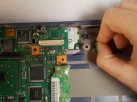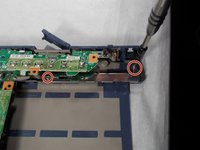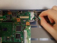 Using a Philips head size #0 remove the 3mm screw on the back of the motherboard.