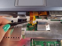 Use the tweezers to disconnect the ribbon cable from the motherboard.