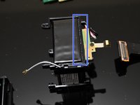 • There is a double-sided sticky pad under the cable, so you may have to use some force to remove it from the board. The connector itself is just snapped in like the last couple of ribbon cables we disconnected.