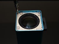• At this point, the only thing holding the lens assembly in its housing is a single piece of tape. The adhesive is not strong. Lift it with a pair of tweezers or the like.