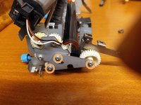The large black cogwheel can now be removed from the end of the fuser pressure roller.