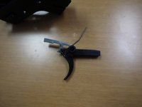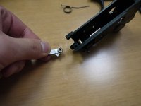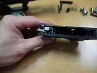 • Remove the trigger and striker from the gun. The striker will be attached to the trigger with a small spring. Note the positioning of the trigger and the spring.