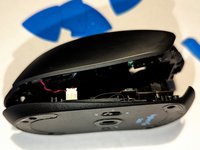 Be careful not to damage the power connector or ribbon cable going from the top shell's boards/battery to the bottom shell's board