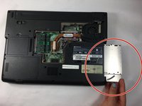 With that screw removed, you can now pull the disc drive out of the laptop by pulling on it in the direction that it slides.