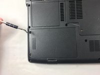 Locate the hard drive at the bottom left corner of the laptop's backside.