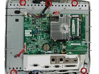 • Remove five LCD shield mounting screws (circled). Do not loosen any screws that are dabbed with sealing compound.