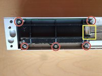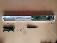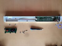Die Verblendung wird mit 4 Schrauben (TR20) auf der Rückseite der Verbledung gehalten. Kann etwas fest sitzen. Leider gibt es davon keine Fotos, allerdings kann man die Schrauben ertasten und je nachdem wie weit das Gerät rausgezogen wurde auch sehen!