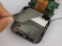 Use the metal spudger to remove metal plate from device. This will reveal the screen.