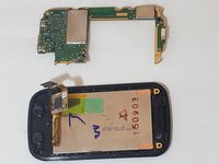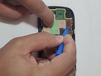 • Disconnect the bronze SIM card flex cable from the motherboard with your finger.