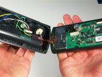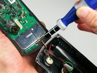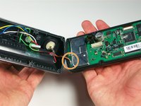 Open the device all the way, making sure to not disconnect the brown antenna wire.