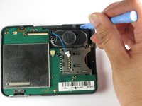 Unscrew the two screws on opposite sides of the speaker using the #00 Phillips screwdriver.