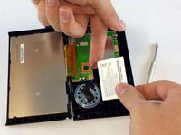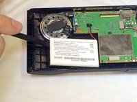 Locate the battery and then use your spudger to gently lift the battery, which is held to the case using a sticky pad, and free it from its position.