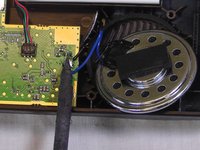 Use your soldering iron to disconnect the wires from the motherboard. Disconnect the ground wire (the black one) and the positive wire (the blue one).