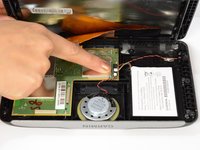 • With the device open, locate the battery with its wire connector plugged into the motherboard. Now delicately detach the battery connector from the center by inserting a spudger underneath the power wire and lift up.