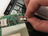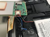Once the black and blue wires are desoldered, llift the motherboard out and away from the device.
