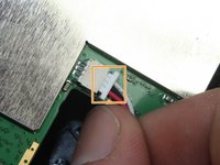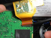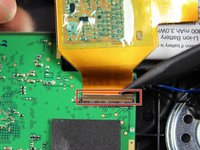 Use a spudger to pop up the ZIF connector tab that fastens the ribbon cable to the motherboard.