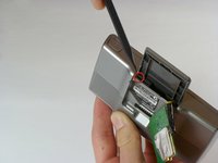 • Insert the pointed end of a spudger into the leftmost slit at the top of the antenna case, where you previously removed the circuit board