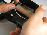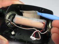 Remove the two #00 Phillips screws securing the battery to the rear case assembly.
