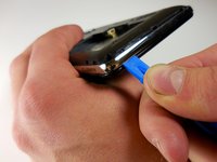Use the plastic opening tool to separate the tabs on the black back cover of the device by leveraging the tool against the frame around the perimeter of the device.