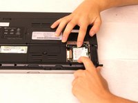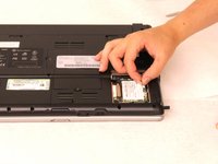 Flip your laptop over and locate the sticker indicating where the internet card is.
