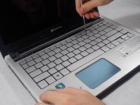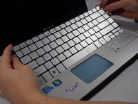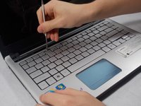 Use the small metal spudger to push in each of the clips on the keyboard