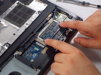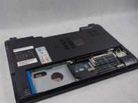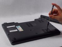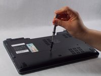 Turn the laptop over so the bottom of the device is facing upwards with the hinge facing away from you.