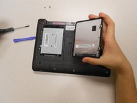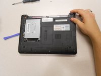 Using a Phillips #0 screwdriver, remove a third 5mm screw that holds the second cover that is directly protecting the hard drive.