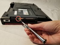 Using the Phillips #1 screwdriver, remove the indicated 6mm screw holding the CD drive.