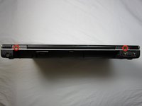 With the computer oriented upright with the back facing towards you, remove the two 3 mm Phillips #0 screws.