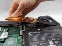 In order to properly remove the fan, disconnect the cable that is attached to the motherboard.