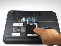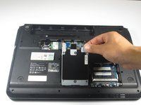 Remove the hard drive component from its compartment. To do so, slide the component downward away from the battery pack.