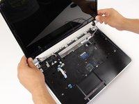 Using the flat edge of the spudger, disconnect the big white LCD cable connector by slightly pulling on it until it's detached from its respective port.