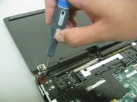 There is one somewhat hidden screw on the left side under the screen hinge, and one to the right of the (left)speaker, right/top side of the video port on mobo.