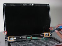 Remove the hinge covers by lifting each with the sharp point of the spudger.
