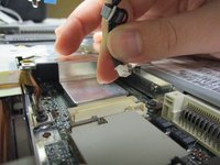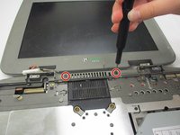 Remove both monitor hinge covers at the base of the screen by unscrewing the 2 mm screws with a Phillips #0 screwdriver.