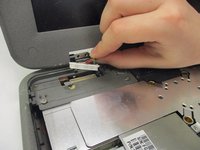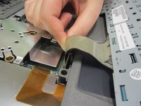 Gently tug on the trackpad connector underneath the keyboard frame to completely remove it.