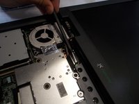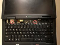 Unscrew the screws holding the connection between the screen and the laptop's interior in place.