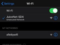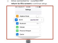 Finally, tap next in the app, or on PC, connect to the "JuiceNet-###" WiFi network (with GoElectric password, if needed). On iOS, tap the graphic at the bottom to open your phone settings, then go back to the main settings page and tap WiFi, and connect to the JuiceNet network.