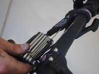 To reassemble your device, Replace the cover on the hydraulic port and reinstall the wheel with the calipers still in their widened position. Make sure that all screws over on the hydraulic ports are very secure. Once the wheel is installed, pump the brakes a few times to seat the brake pads. Confirm function of your brakes before attempting to ride the bike by inverting the bike so that it rests on the handlebars and seat, then spinning the rear and front wheels manually. If this does not work, you may need to add more fluid. Ride safe!