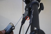 Use a torque head bit to remove the screw on the hydraulic port of the brake handle. Be careful to not lose this screw.