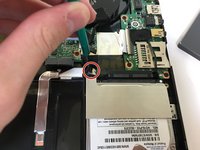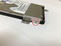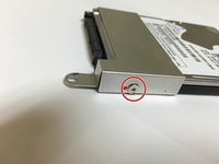 Un-screw the metal holder by removing two more screws, one on either side of the hard drive.