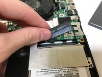 Disconnect the battery from the motherboard by gently prying the plastic connector apart