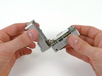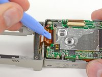 Using a plastic opening tool or your fingernail, flip up the locking tab on the SD board ribbon cable ZIF connector on the motherboard assembly.